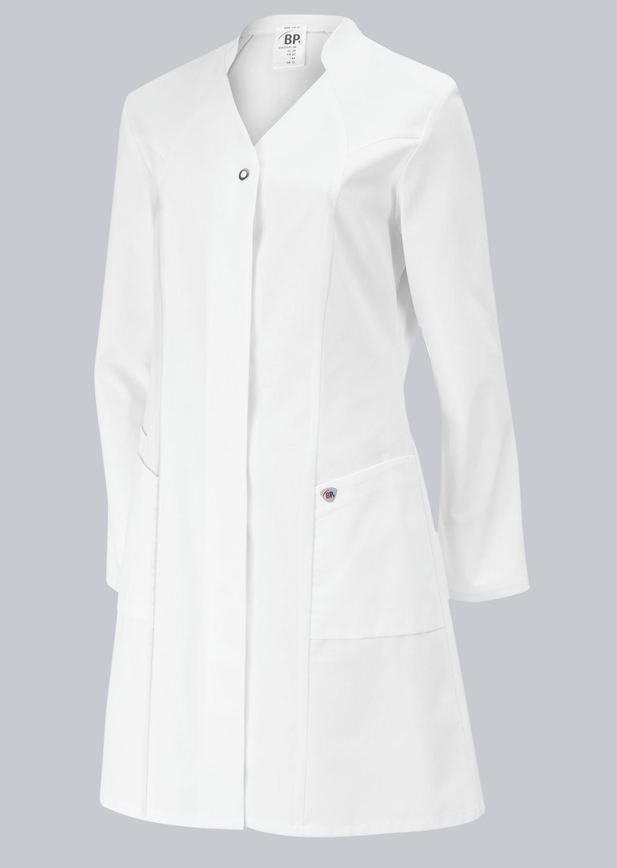 BP® Lange katoenen damesjas – Dames Werkjas 100% Katoen met Opstaande Kraag en V-hals