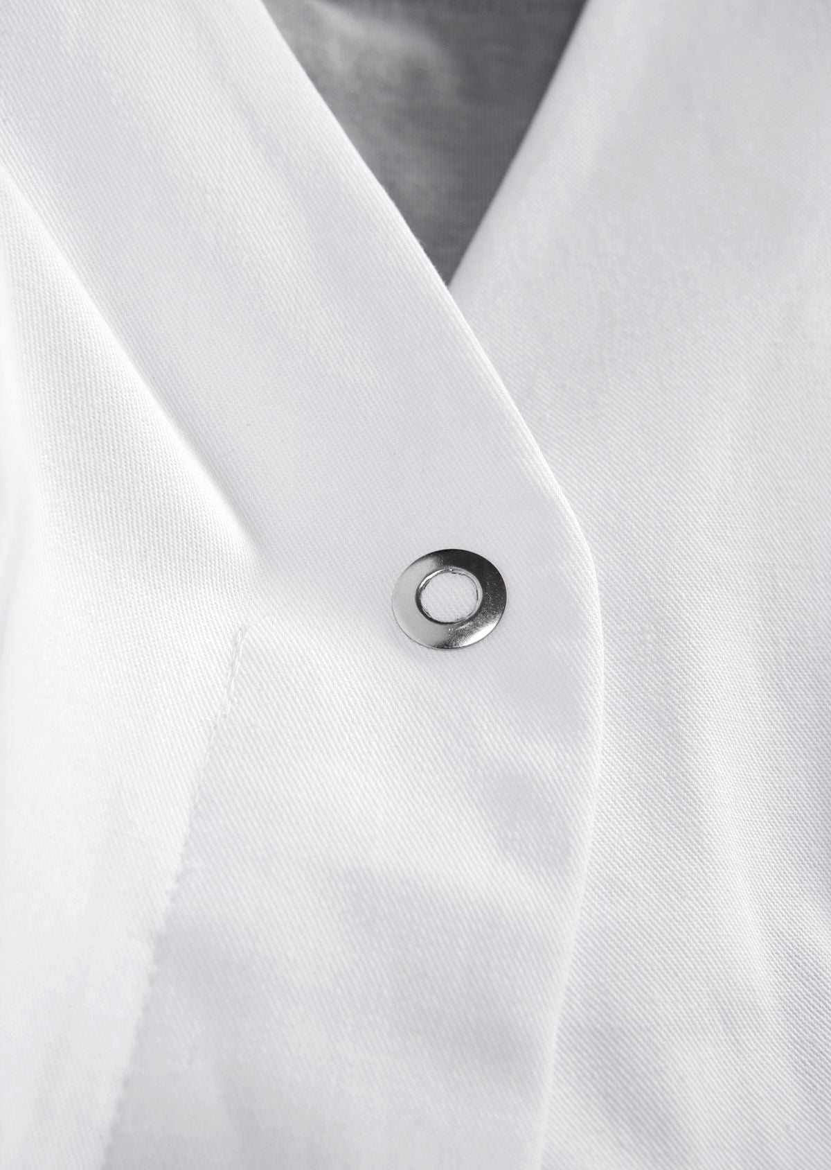 Deze damesjas is ideaal voor gebruik in de zorg, laboratoria en andere professionele werkomgevingen waar comfort en een verzorgde uitstraling belangrijk zijn.